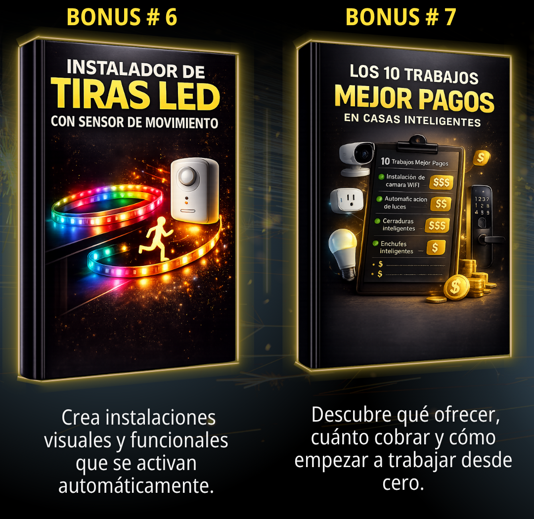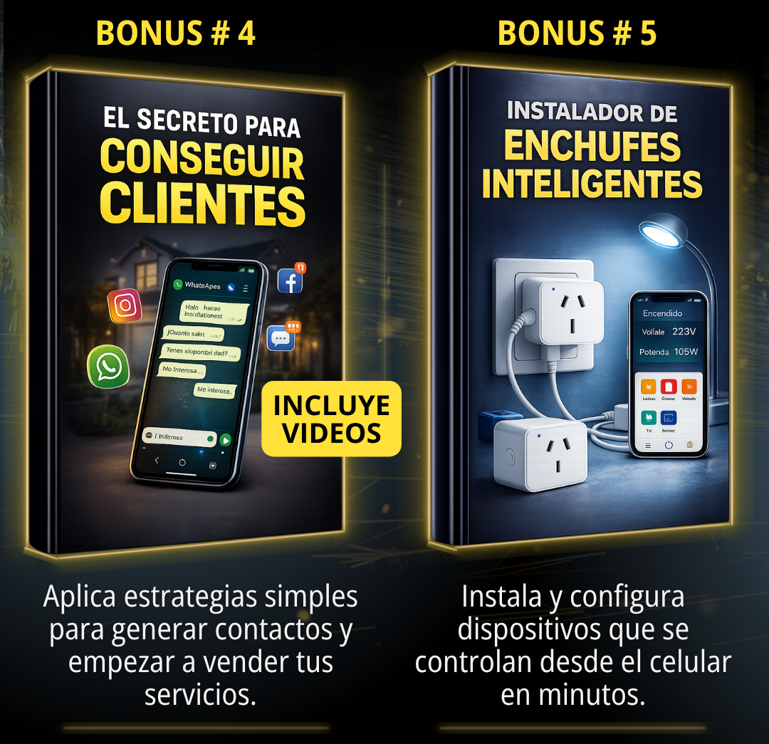 Además, tenés bonos prácticos como cámaras, cerraduras, iluminación automática, app de presupuestos y cómo conseguir clientes 🚀
